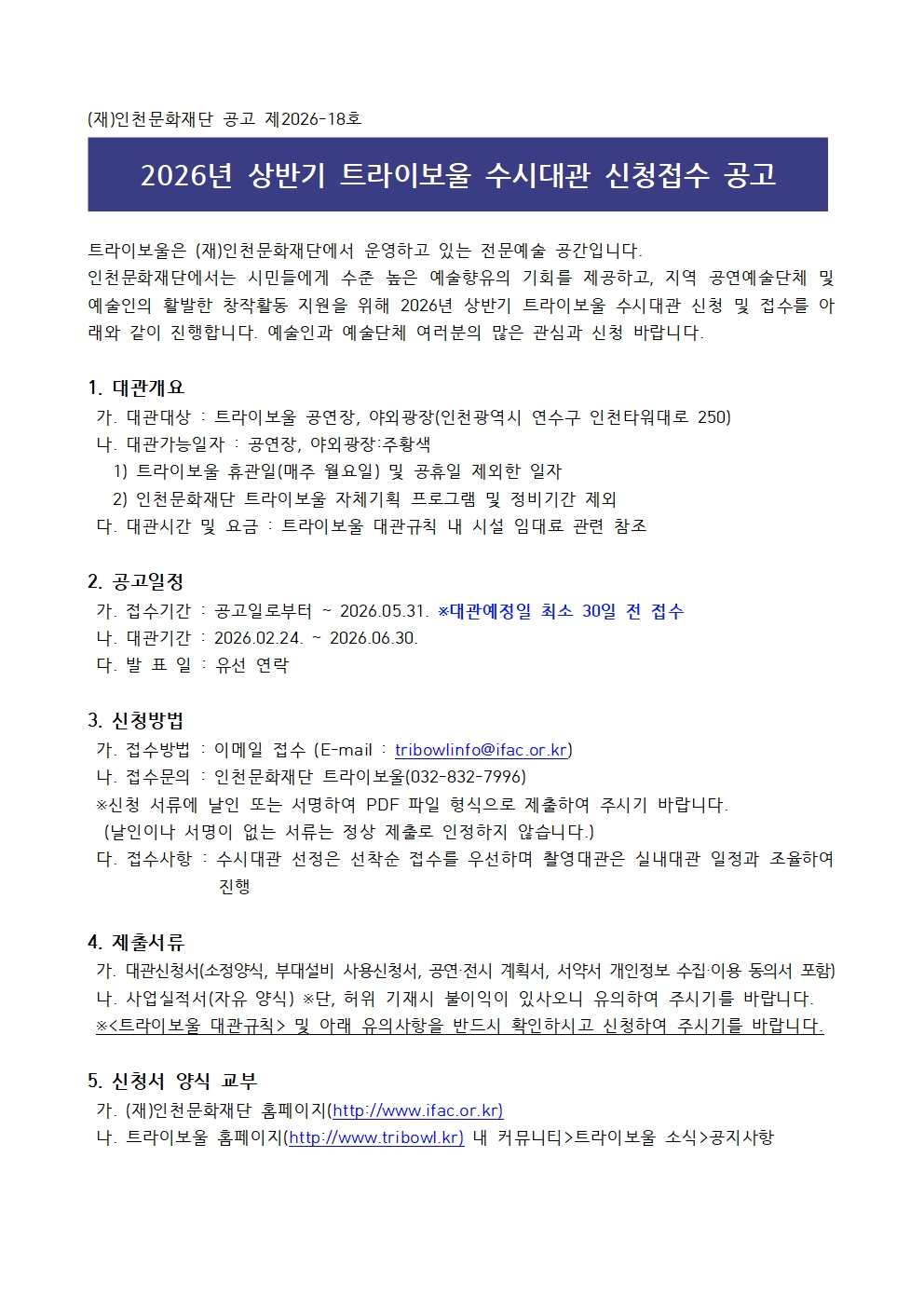 2026년 상반기 트라이보울 수시대관 일정 업데이트(2차)